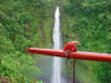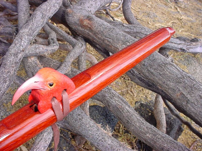 Ancient bird catchers smeared sap onto a branch under a blossom and when the Iiwi would come to sip the flower's nectar, it was caught! The bright red feathers were used to make capes, and all sorts of ornaments for the Chiefs, making this bird very Sacred to the Native peoples. Today this rare bird is scarce. Disease, habitat loss, and predation have taken it's toll on the Iiwi.