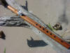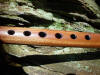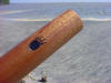 Sapele flute is keyed to Em... This flute weighs in @ approx 23" in length with a one inch bore. It is large with a deep clear beautiful voice!!! Absolutely the best mouthpiece money can buy! Mouthpiece is turned slightly down as you can see in photos which allows the player to hold the flute in a more vertical position if desired.