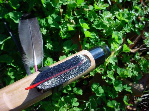 Pennsylvania Black Cherry Flute is keyed to Low Em with a 1" bore dia., my dished finger holes, a mouthpiece of your dreams - so comfortable the flute becomes an extension of yourself. Actual Raven flight feather. Tuned using Virtual Strobe dead on the money all the way up! This flute has a Deep Concert Quality Voice and is Crystal Clear 100%!