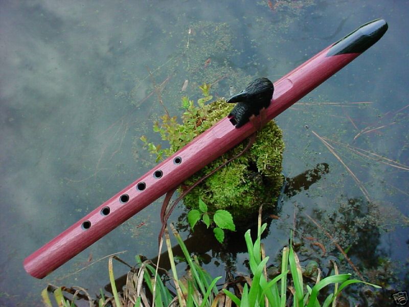 This flute carries the heavy billed Raven totem and has received this right because of sightings in the area to the west in the swamp north of the Flint. This is #4 of the four flutes which honor these powerful medicine birds!