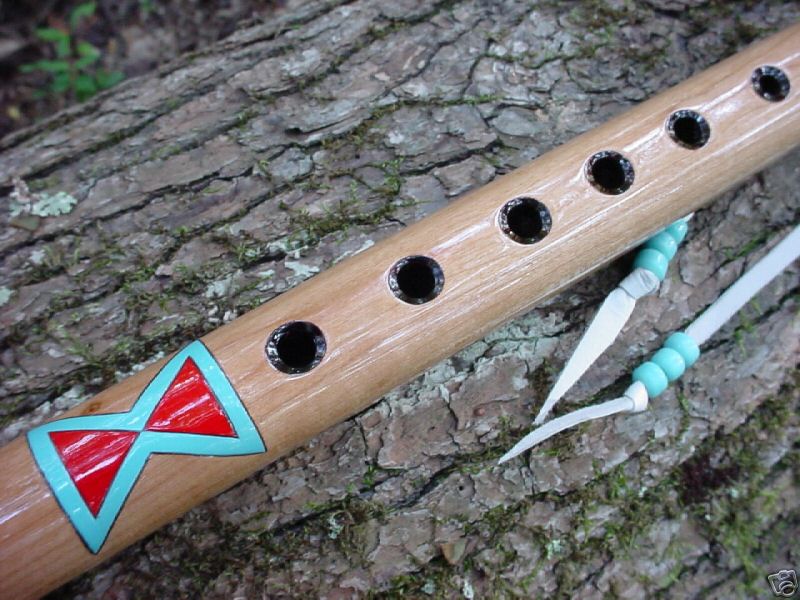 Cherry Flute is keyed to Am... Features a beautiful finish you will truly Love!!!, approx 21" in length, dished finger holes, absolutely the best mouthpiece money can buy! Wet out proof!!!!! Tuned using Virtual Strobe to perfection. When I tune these flutes I am looking down the barrel at three different style tuners! UNBELIEVABLE LOUD & CLEAR Concert Quality Voice, money back guarantee!!! Super CLEAN, CRYSTAL CLEAR VOICE THE BEST EVER!!!!!!, I will pay the shipping back to me, and refund every cent, should this not be the VERY BEST flute you have ever heard or owned. Titled, signed, numbered and dated.... Titled, "Wolf Dog at Dawn."