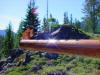 After two days in the Cascade Mountain Range where this wolf was thought to originate, my smoke no longer rose to the sky, yet traveled along the ground to the south - the sign of bad weather to come, and time to move on.