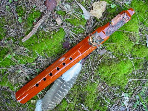 Per the Indian arts and crafts board I must state the following: Friends, you are viewing an Authentic Swampfox Creation carrying the Swampfox trademark & I am the sole maker of these flutes and totems. From the time I was 7 years old I knew I would build the flutes. They are Native Inspired thru my Grandmother's people of the Muskogee Creek Nation, but more than that, they are inspired thru the Great Creator of all living things. Many times as I stand before the wood, I have no idea what the flute nor its totem will turn out to be. Sometimes in life we must ask in earnest prayer for the answers, even to the smallest of things. As I pray for Creator's wisdom and not my own, it becomes clear in my mind what is meant for these flutes, and it is a powerful presence when this Creator's wisdom moves. If it is important for you to purchase a flute from an enrolled tribal member, it is my prayer that you find this flute you are seeking. Remember, according to the Indian Arts and Crafts Act, {an act in place to protect the consumer from purchasing items that are not 100% AUTHENTIC NATIVE AMERICAN MADE}, should even the slightest part of an instrument, or craft be created by a Non-Indian person, the instrument / craft CANNOT Legally be sold as "Native American made", including ANY art work in any shape, form, or fashion. For a first criminal offense, an individual is fined not more than $250,000 and/or jailed not more than 5 years; subsequent violations are not more than $1,000,000 and/or 15 years. Good night!!!!!! A person could make a lot of flutes in 5 years!!! :))