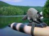 He was trying to open a grill which we had cooked on earlier that night with his little human like hands!!! I was very relieved to see this coon, and so,,, somewhat embarrassingly, "Muskogee Moon" had it's totem!