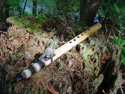 Per the Indian arts and crafts board I must state the following: Friends, you are viewing an Authentic Swampfox Creation carrying the Swampfox trademark & I am the sole maker of these flutes and totems. From the time I was 7 years old I knew I would build the flutes. They are Native Inspired thru my Grandmother's people of the Muskogee Creek Nation, but more than that, they are inspired thru the Great Creator of all living things. Many times as I stand before the wood, I have no idea what the flute nor its totem will turn out to be. Sometimes in life we must ask in earnest prayer for the answers, even to the smallest of things. As I pray for Creator's wisdom and not my own, it becomes clear in my mind what is meant for these flutes, and it is a powerful presence when this Creator's wisdom moves. If it is important for you to purchase a flute from an enrolled tribal member, it is my prayer that you find this flute you are seeking. Remember, according to the Indian Arts and Crafts Act, {an act in place to protect the consumer from purchasing items that are not 100% AUTHENTIC NATIVE AMERICAN MADE}, should even the slightest part of an instrument, or craft be created by a Non-Indian person, the instrument / craft CANNOT Legally be sold as "Native American made", including ANY art work in any shape, form, or fashion. Should a non-native person work a single part of the instrument, it cannot be sold as "Authentic Indian made." For a first criminal offense, an individual is fined not more than $250,000 and/or jailed not more than 5 years; subsequent violations are not more than $1,000,000 and/or 15 years. Good night!!!!!! A person could make a lot of flutes in 5 years!!! :))