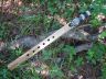 Instrument Grade Poplar Flute is keyed to Gm - Features my dished finger holes - In years past I have created some custom flutes with this finger hole layout - Make sure you play with your right hand at the bottom if you are the Keeper of this one... Approx 23" in length, a slightly turned down mouthpiece which allows you to hold the flute in a more comfortable position during extended play. Loud, Crystal Clear Voice is so AWESOME you will surely Love the very moment your breath enters the flute's spirit! Tuned to absolute perfection using Virtual Strobe @ 72 degrees for studio recording!!! Signed, dated, titled, and numbered.