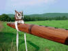 Black Walnut flute is keyed to F# with a 7/8" bore dia. & approx. 22" in length. The mouthpiece may be the best yet! The flute has dished finger holes and three sets of rings which set this flute apart from others. The end of the barrel has a "wrap around" mouth (shown below)...This flute sounds AWESOME and is ready to go anywhere my friends! It will be hard for folks to pass this one by without stopping to take a look!! I put this flute into the same class as the famous Pileated Woodpecker flute.......