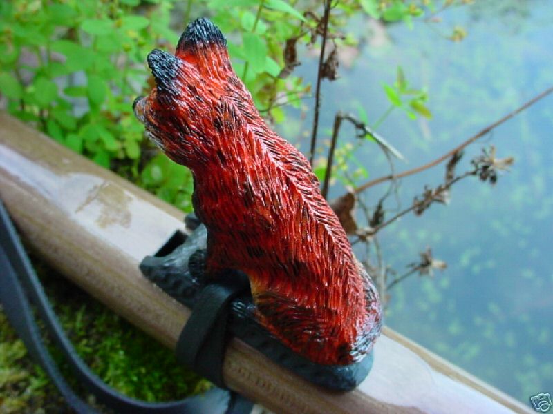 The Poplar wood is approx 45 years old & is much darker than the photos appear, making the black legs of this fox flow, as if an extension of the totem itself...This flute carries the mark of the Creator in a Fox Track feather. Flute and totem are hand carved and hand painted as well. The key is Bm - the favorite key of Dr. William Clark out of Canada who's collection is among the largest known. The flute weighs in @ approx 21" in length, my dished finger holes, absolutely the best mouthpiece money can buy! Wet out proof!!!!! Tuned using Virtual Strobe to absolute perfection. When I tune these flutes I am looking down the barrel at three different style tuners! UNBELIEVABLE LOUD & CLEAR Concert Quality Voice, money back guarantee!!! Hear this Powerhouse flute for yourself @ Swampfoxflutes.com very soon to come, or send me an email, even if you only want to listen........ :))