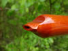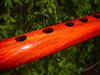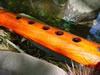 Orange Fire Padauk flute glows like the Sun!!! Keyed to Am w/ 7/8" bore dia., my dished finger holes, a Slotted mouthpiece - first of it's kind - given to me from Creator - so comfortable the flute becomes an extension of yourself. This mouthpc allows the player total control, preventing leakage from the lips which at times causes the unwanted shrills during recording.