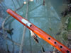 Orange Fire Padauk flute glows like the Sun!!! Keyed to F# w/ 7/8" bore dia., my dished finger holes, a mouthpiece of your dreams - so comfortable the flute becomes an extension of yourself. Tuned using Virtual Strobe dead on the money all the way up! This flute is Concert Quality and is Crystal Clear 100%! Signed, titled, numbered and dated.