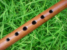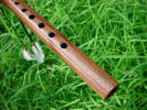 Flute is from the hard reddish-brown tropical American tree called Mahogany... Keyed to mid G#. Features my dished finger holes, perfectly comfortable Pow Wow mouthpiece from days of old, Beads of the Crow, & sacred standing bear totem. Retail $850.00