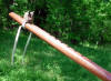 This totem represents the smaller wolf which spoke to me recently with his howling. The end of the flute is burned in the sacred fire (not painted) and carries the mark of a shape shifter.